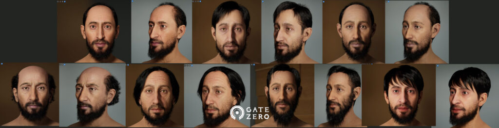 We are in the early stages of character design, doing research and exploration to customize our crowd characters. Here are some sample heads for the Jewish male characters customized in Metahuman:
