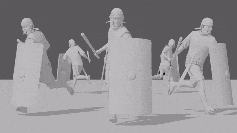 Here’s a sneak peek at a couple Roman guard animations:
