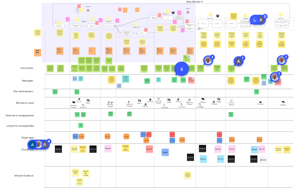 The narrative team has been working on the Beat Boards for each mission, which serves as the master plan for the game, providing a clear, top-down view of the full experience. It maps out all the main missions and their core themes, clarifying each mission’s purpose, the player’s objectives, and the key narrative and biblical beats being explored.