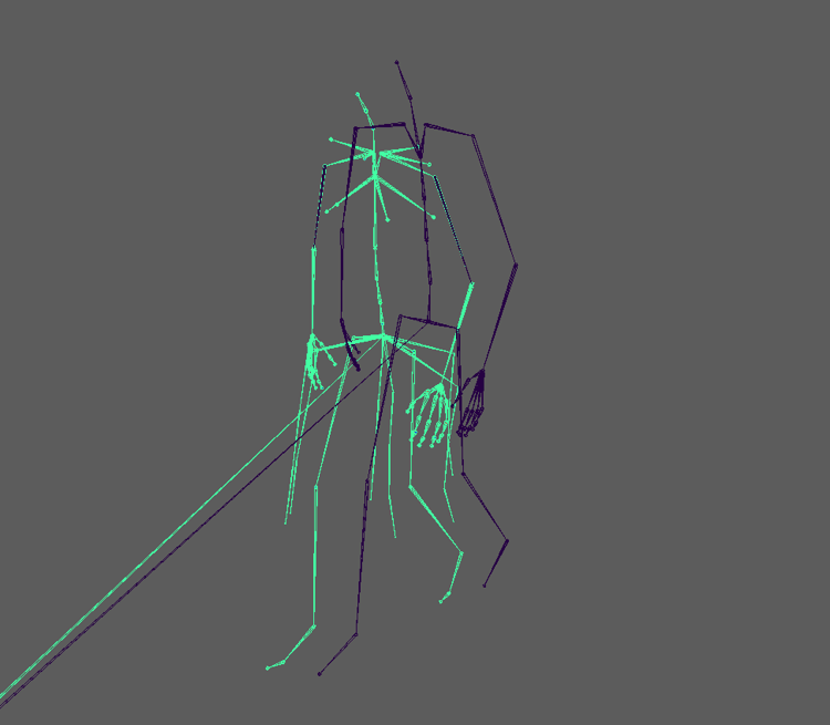- HumanIK maps the Xsens skeleton onto our custom skeleton through a standard bipedal bone hierarchy, allowing the custom skeleton to move as the Xsens (MoCap) skeleton. So now we’ve got something that looks like this: